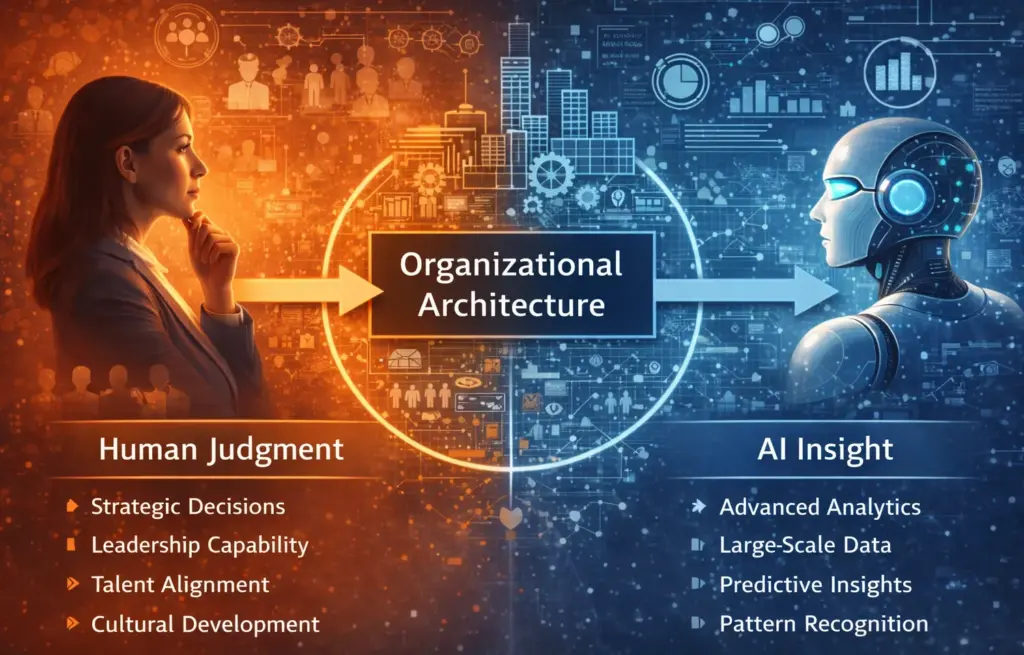 But decisions about leadership, culture, capability development, and organizational design require context, judgment, and human understanding.